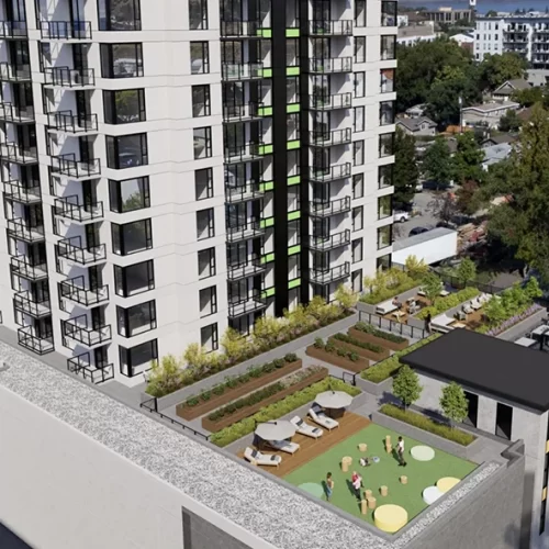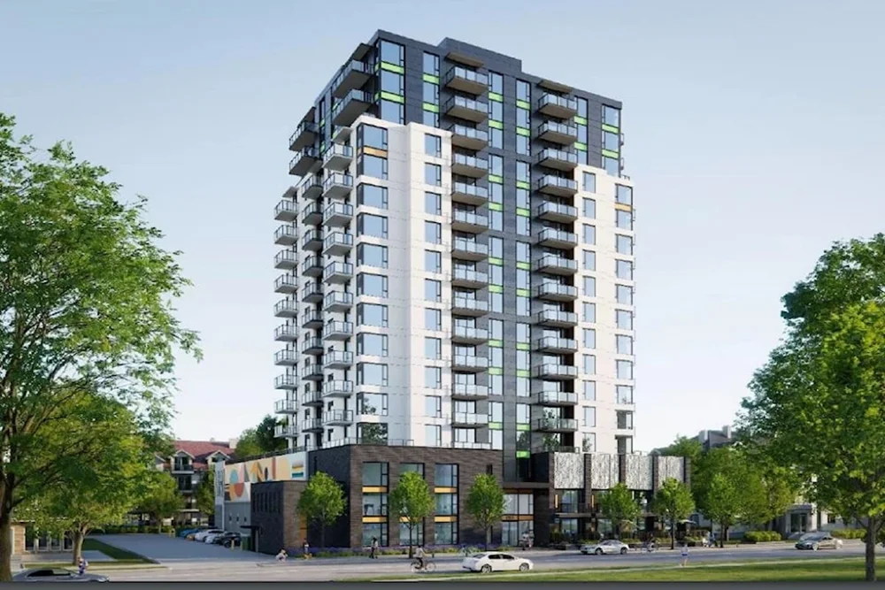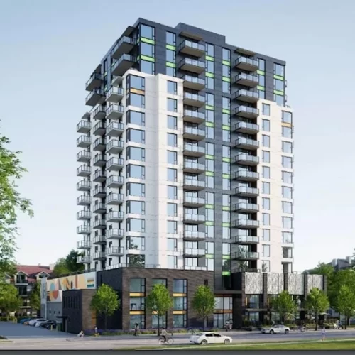 This 19-storey purpose-built apartment building will offer studio, one-bedroom and two-bedroom options with sought after amenities that include underground parking, 198 secure bicycle storage spaces, and a shared community and outdoor space.