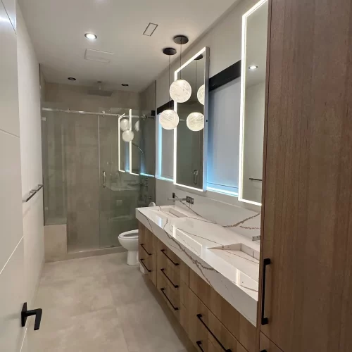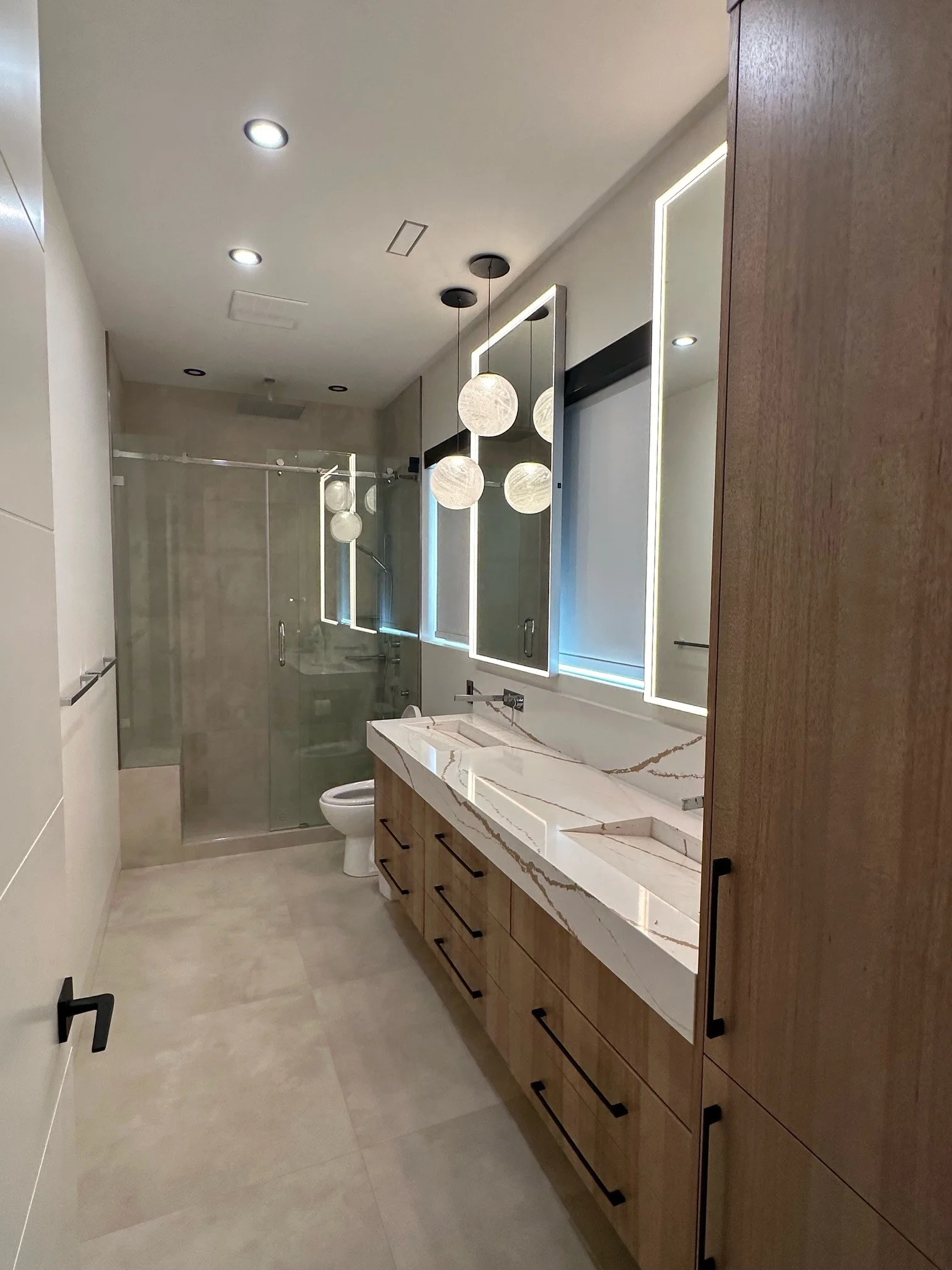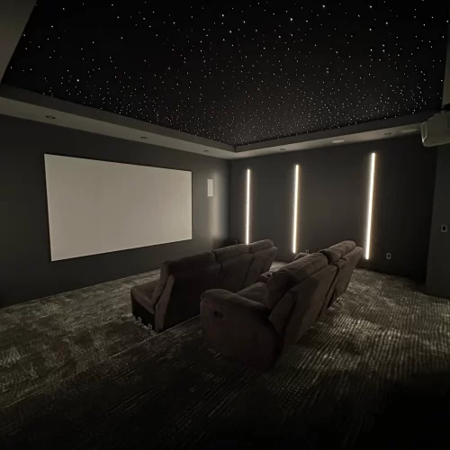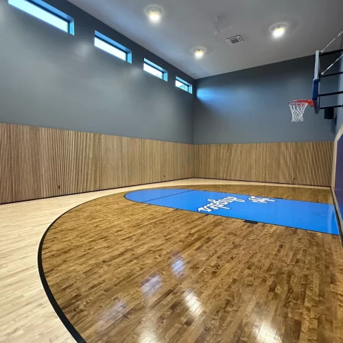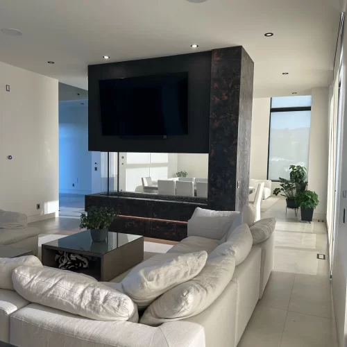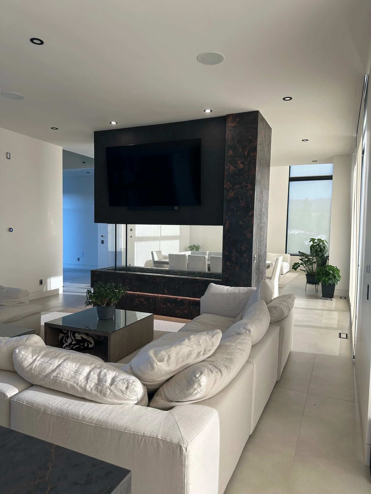 This 10,000+ sq. ft. luxury custom home is a showcase of modern living, blending advanced technology with elegant design. Highlights of this project include an underground basketball court, offering both recreation and exclusivity. The home is equipped with a fully automated Lutron lighting control system, allowing for seamless ambiance adjustments throughout the space. A custom theater featuring a starlight ceiling provides an immersive cinematic experience, while the complete Factor Electronics home audio system ensures high-quality sound throughout the residence. In addition, the home features Hunter Douglas automated blinds for convenience and privacy, heated floors for ultimate comfort, and is prepped to be solar-ready, reflecting a commitment to sustainable living.